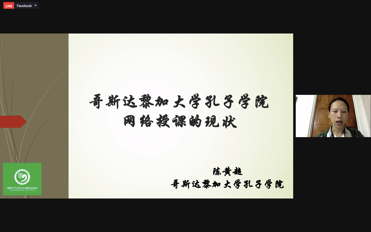 之后,哥斯达黎加大学孔子学院的陈黄超老师做会议报告,题目为《哥斯达黎加大学孔子学院网络授课的现状》。陈老师分别介绍了哥斯达黎加大学孔子学院的网络教学所取得的成果以及所存在的问题。他指出,哥斯达黎加大学孔子学院在疫情之下积极探索网络汉语教学新模式,2020年新冠疫情爆发后,在网络授课环境下,哥斯孔院新增学员294人,总学员达1178人,较2019年性爱电影 增长率为33%。他们充分利用网络资源,每周都会给学生提供1-2次的在线文化交流活动,通过Facebook Live直播,让更多对汉语和中国文化感兴趣的拉美国家人民有了更多了解中国的新方式。
