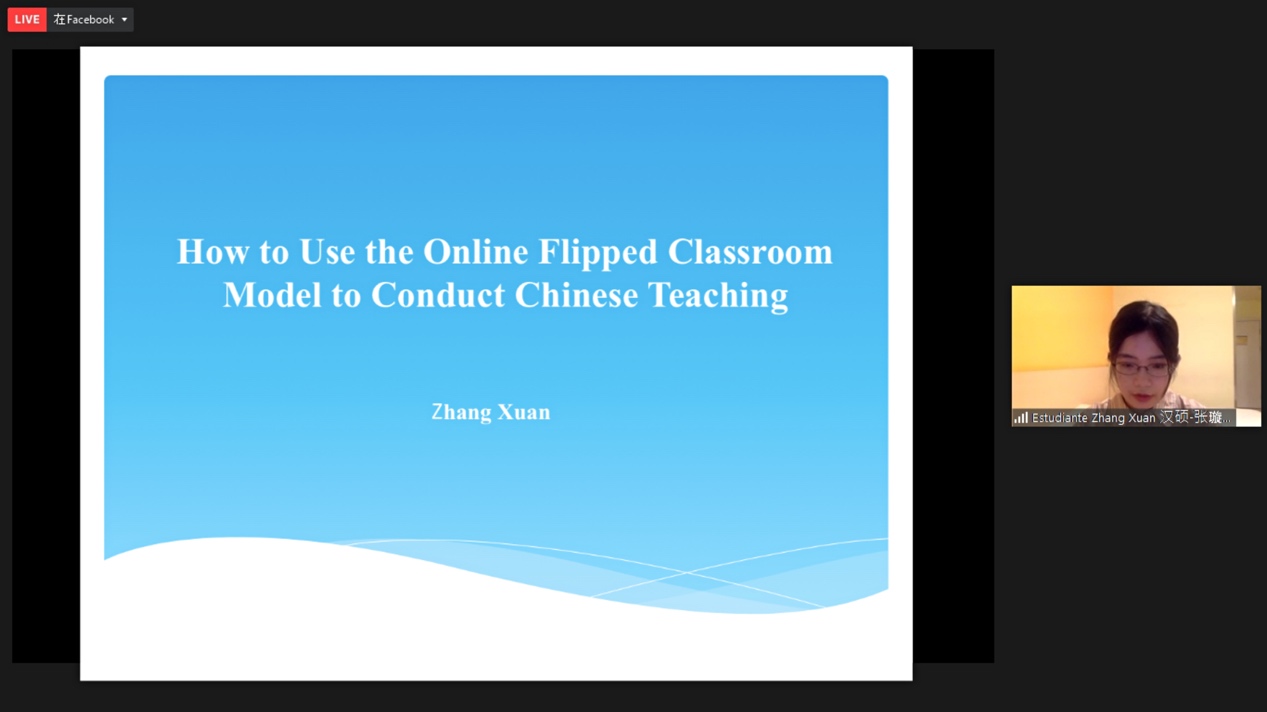 性爱电影 2020级汉语国际教育专业硕士张璇同学的发言主题为《浅谈如何利用线上翻转课堂模式进行国际中文教学》,她对传统的“翻转课堂”教学模式进行了简要解读,随后针对将整个翻转课堂模式搬到线上并应用到国际中文教学进行了详细阐述。