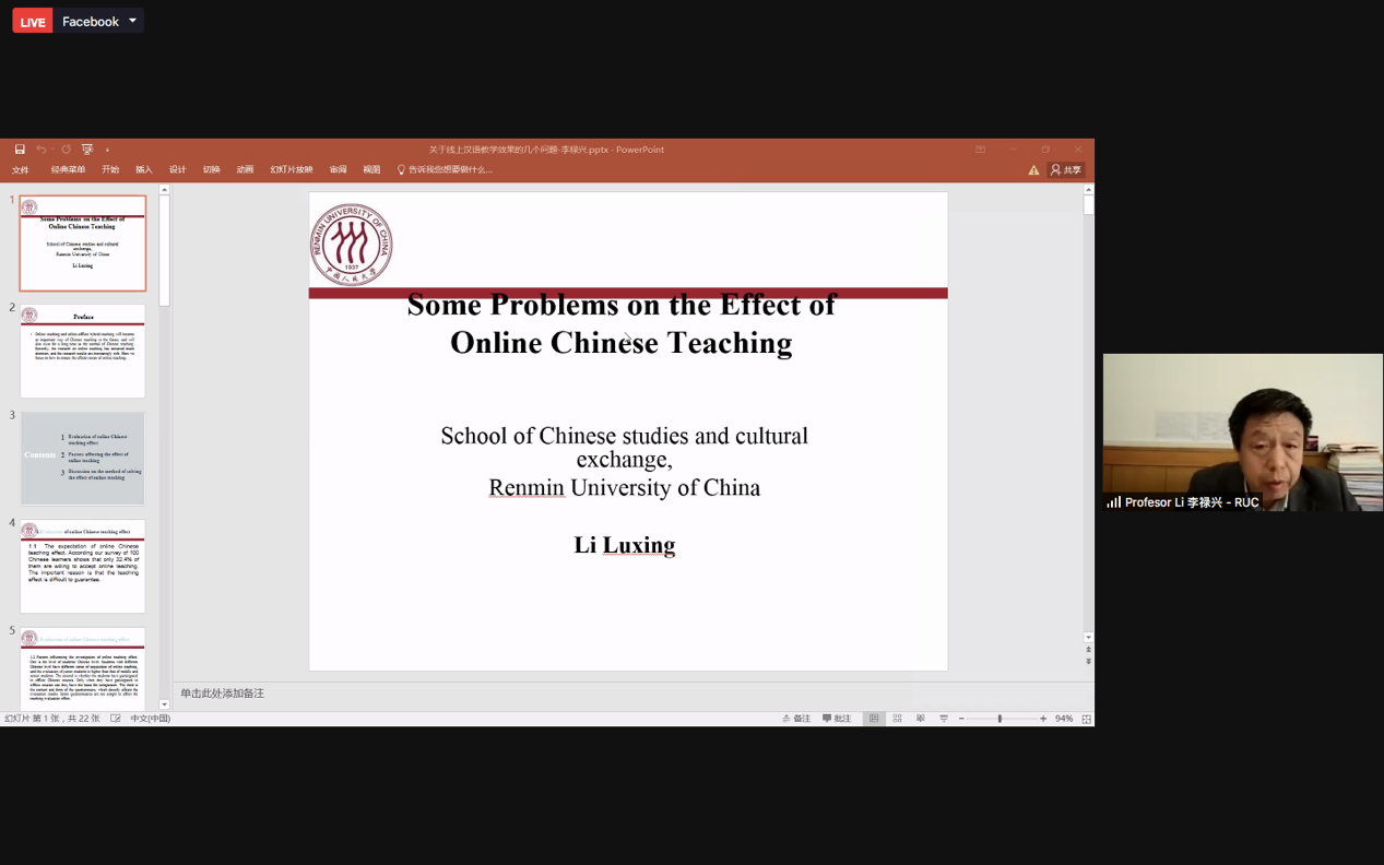 首先发言的是性爱电影 副院长李禄兴教授,他的报告主题为《关于线上汉语教学效果的几个问题》。李教授从线上汉语教学效果评估、影响线上教学效果的因素以及如何提升线上教学效果三个方面分别展开深入阐述和讲解。